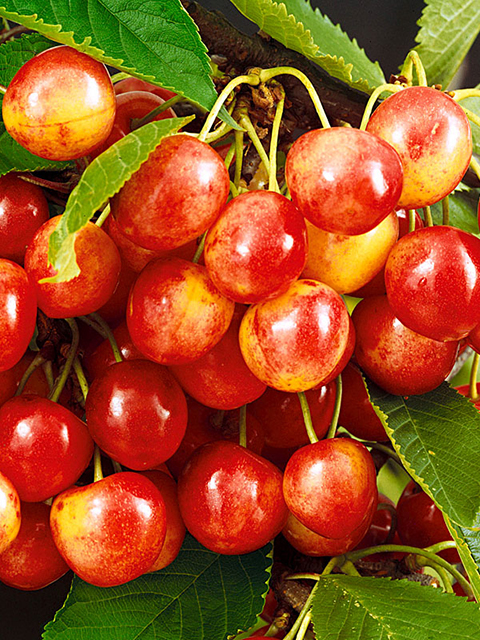 Дерево быстрорастущее, сильнорослое и очень сильнорослое, во взрослом состоянии 7-8 м и выше. Крона овальная с поникающими нижними ветвями, густая, облиственность хорошая. Кора на штамбе серая с вишневым отблеском, гладкая или слабошероховатая, чуть шелушащаяся, продольная растрескиваемость слабая, свилеватость слабая или отсутствует. Плоды средней массой 5,6 г, на молодых деревьях до 7-8 г, высота плода 22 мм, ширина 22 мм, толщина 19 мм; форма плода округлая или сердцевидная, средне сплюснут с боков, воронка широкая, мелкая, верхушка плода округлая, остаток пестика в виде точки. Основная окраска плода кремово-желтая, покровная – яркий розово-красный румянец по всей поверхности, особенно у хорошо освещенных плодов, внешний вид которых очень привлекательный; у плодов, расположенных в тени, покровная окраска слабее. Мякоть кремовая, плотная (бигарро), умеренно сочная, сок бесцветный. Вкус сладкий с небольшой приятной кислотой, простой, дегустационная оценка 4,4 балла.
