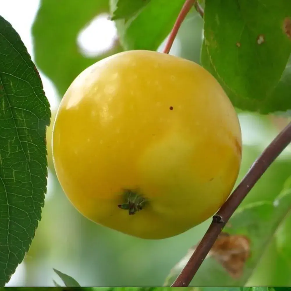 Растение сильнорослое, Плоды небольшие, их вес не превышает 160 г. В период созревания кожура приобретает зелёный цвет с жёлтым оттенком. Во время хранения плоды полностью желтеют. Мякоть светлая, сладкая, привкус кислоты сильно выражен. Плодоношение начинается через 7-8 месяцев после посадки. Полное созревание плодов приходится на конец сентября-начало октября. Количество плодов увеличивается по мере роста дерева. С растения возрастом 20 лет за год удается собрать до 200 кг яблок. Плоды хранятся долго, около трех месяцев. При правильном уходе срок хранения может увеличиться до 4 месяцев