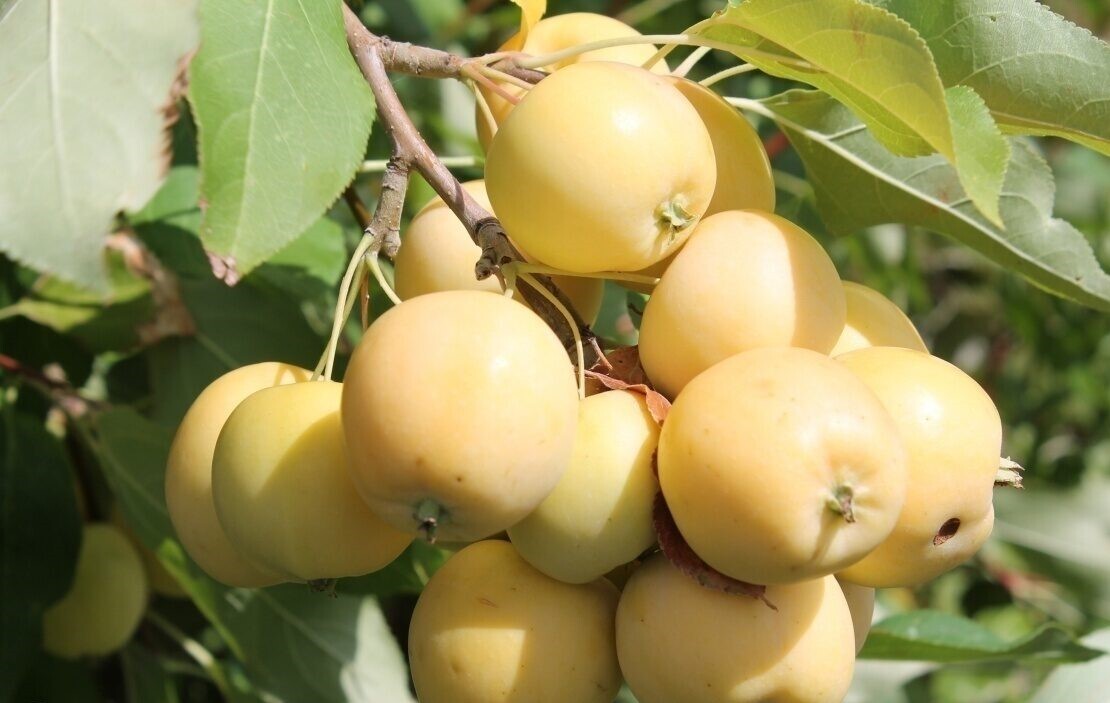 Яблоня Янтарь – это среднерослое дерево с не очень густой раскидистой кроной. В высоту дерево достигает 3-4 метров. Скелетные ветви характеризуются извилистой формой, необычным серым окрасом коры, а также ростом под прямым углом, за счет чего дерево выглядит объемным, занимая много места на участке. Главными плюсами сорта Янтарь считаются: обильные урожаи и стабильное плодоношение, быстрая адаптация к климату и грунту, высокие вкусовые качества плодов, высокая лежкость (яблоки могут храниться до середины января),транспортировка без значительных потерь. Плоды прочно удерживаются на дереве. Для зимнего хранения (до середины января) их следует снимать несколько недозрелыми, около 25 августа. В более поздний срок они наливаются, становятся еще более вкусными, но – раннеосеннего потребления. Плоды потребляются в свежем виде и готовят из них чудные продукты переработки – соки, компоты, варенье, повидло и др.