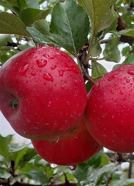 Позднезимний сорт, устойчивый к низким температурам, способный приносить хорошие урожаи, выносливый и неприхотливый – это то, что нужно знать про Подарок Графскому. Красивые красные яблоки с отличным кисло-сладким, немного винным вкусом, которые легко транспортировать даже на довольно дальние расстояния, нравятся практически всем садоводам. Сорт не требователен к почвам или климату, начинает плодоносить довольно рано, устойчив к разным грибковым яблоневым болезням. Рекомендован для выращивания в коммерческих интенсивных садах и на небольших территориях у дома. Отличается сорт крупными и очень крупными плодами, которые могут достигать веса 300-350 граммов. Однако растут они обычно на одном дереве неодномерными, некоторые могут быть мелкими, а другие очень большими. Они округлые, симметричные, с неярко выраженной ребристостью, могут быть слегка реповидными или приплюснутыми по центру. Кожица гладкая, глянцевая, блестящая, средней толщины, не хрупкая. Основной цвет у нее зеленый в неспелом виде, по мере созревания становится все более желто-зеленым или лимонным. Покровный румянец занимает примерно 75-90% плода, он красный или красно-малиновый, плотный, размыто-штриховой, крапчатый. Может иметь легкий восковый налет, не меняющий основной оттенок. Подкожные точки светлые, многочисленные, просматриваются средне.